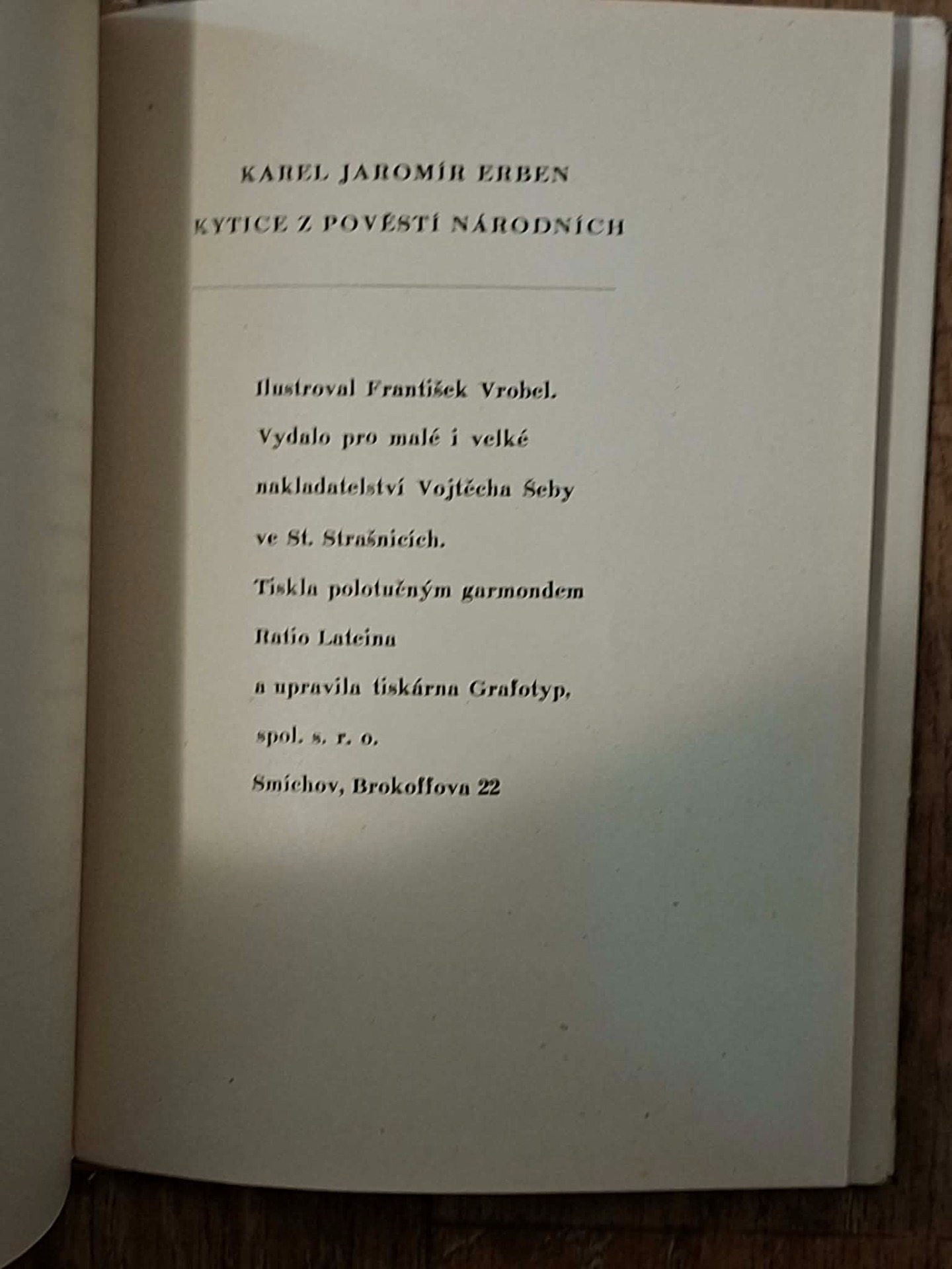 ilustrováno Františkem Vrobelem a vydáno nakladatelstvím Vojtěcha Šeby